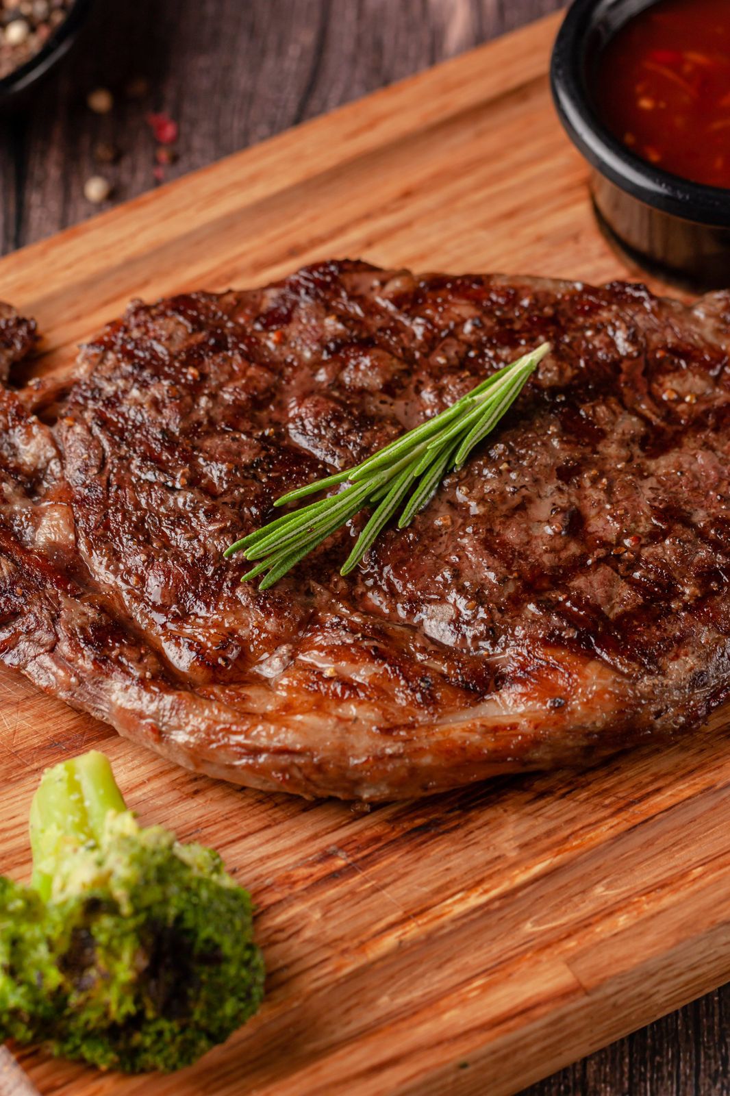steak made from marbled Black Angus beef, classified as Prime, which means the highest marbling and, therefore, tenderness and juiciness of the meat