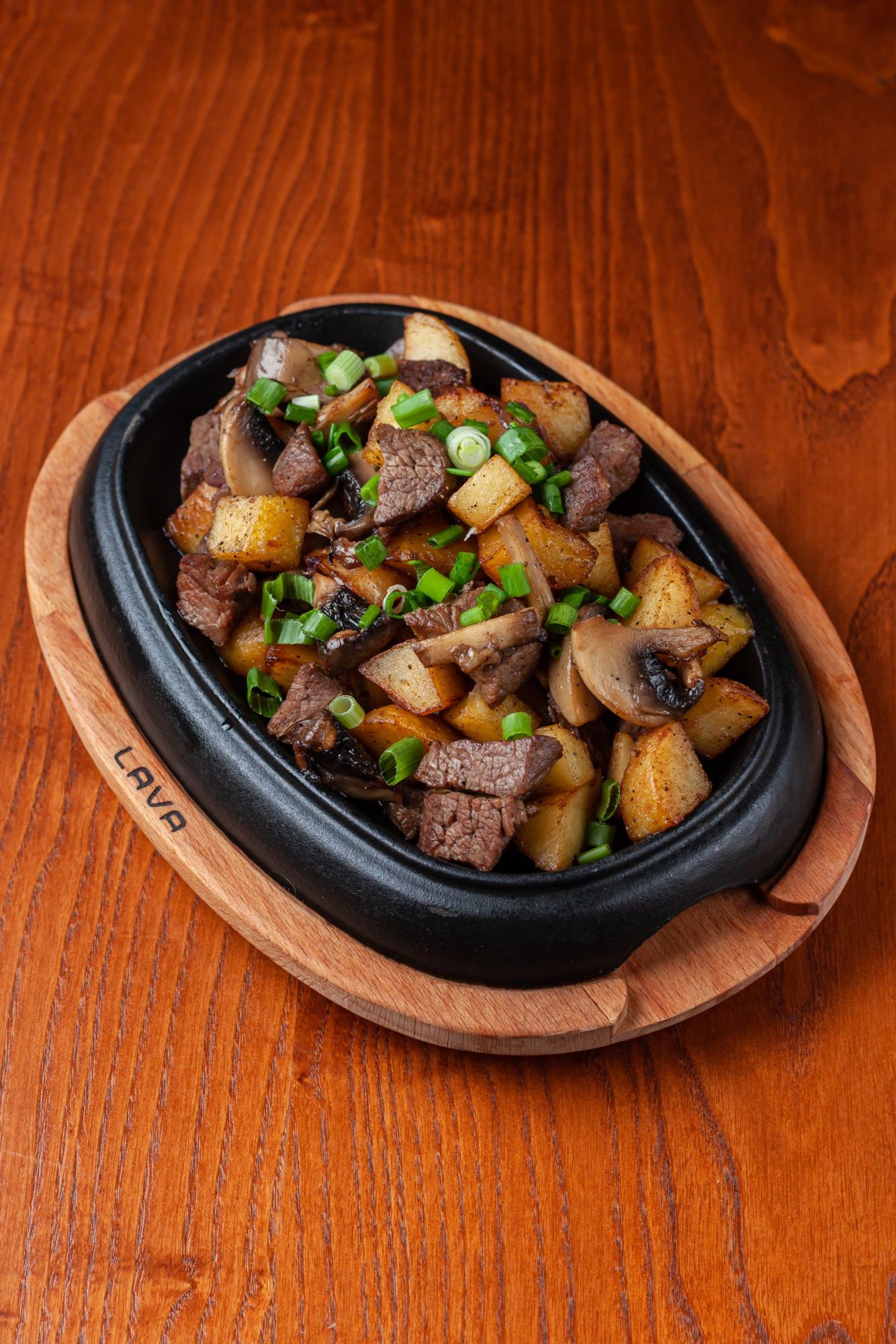 Ет және саңырауқұлақ қосылған үй мәзіріндегі картоп