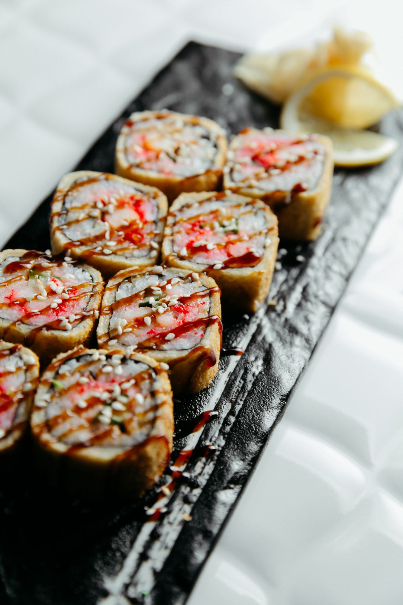 Жареный ролл - блюдо японской кухни, главными ингредиентами которого являются рис, угорь, соус унаги и сыр филадельфия.