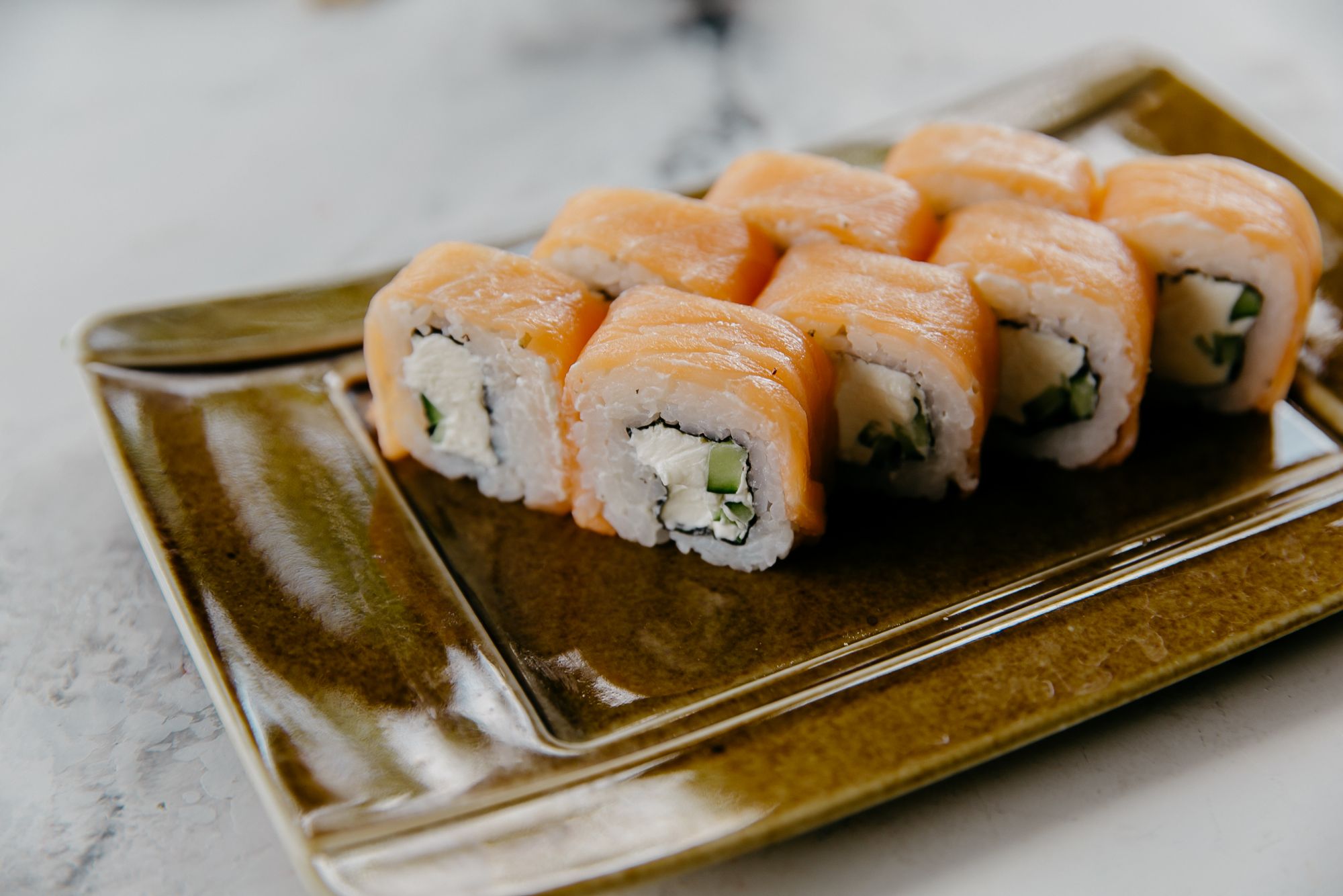 Традиционное блюдо японской кухни, главными ингредиентами которого являются рис, сыр филадельфия и рыба лосось.